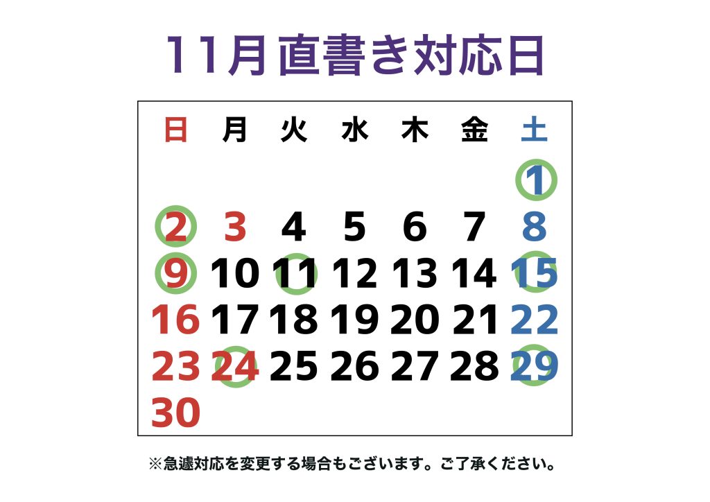 その場合は当日の朝10時までにお知らせをだします。お知らせがない場合は直書きできませんので、ご了承ください。
