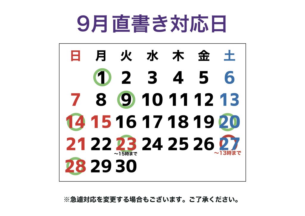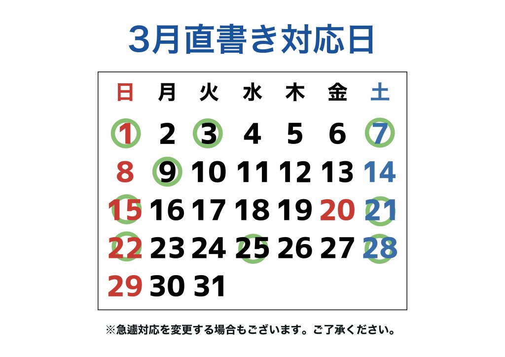 他の祭典などてが回らない準備があるため、直書き日の日数を大幅に減らしての対応も増えてしまいます。ご了承ください。