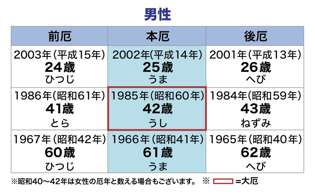 令和8年厄年(数え年)